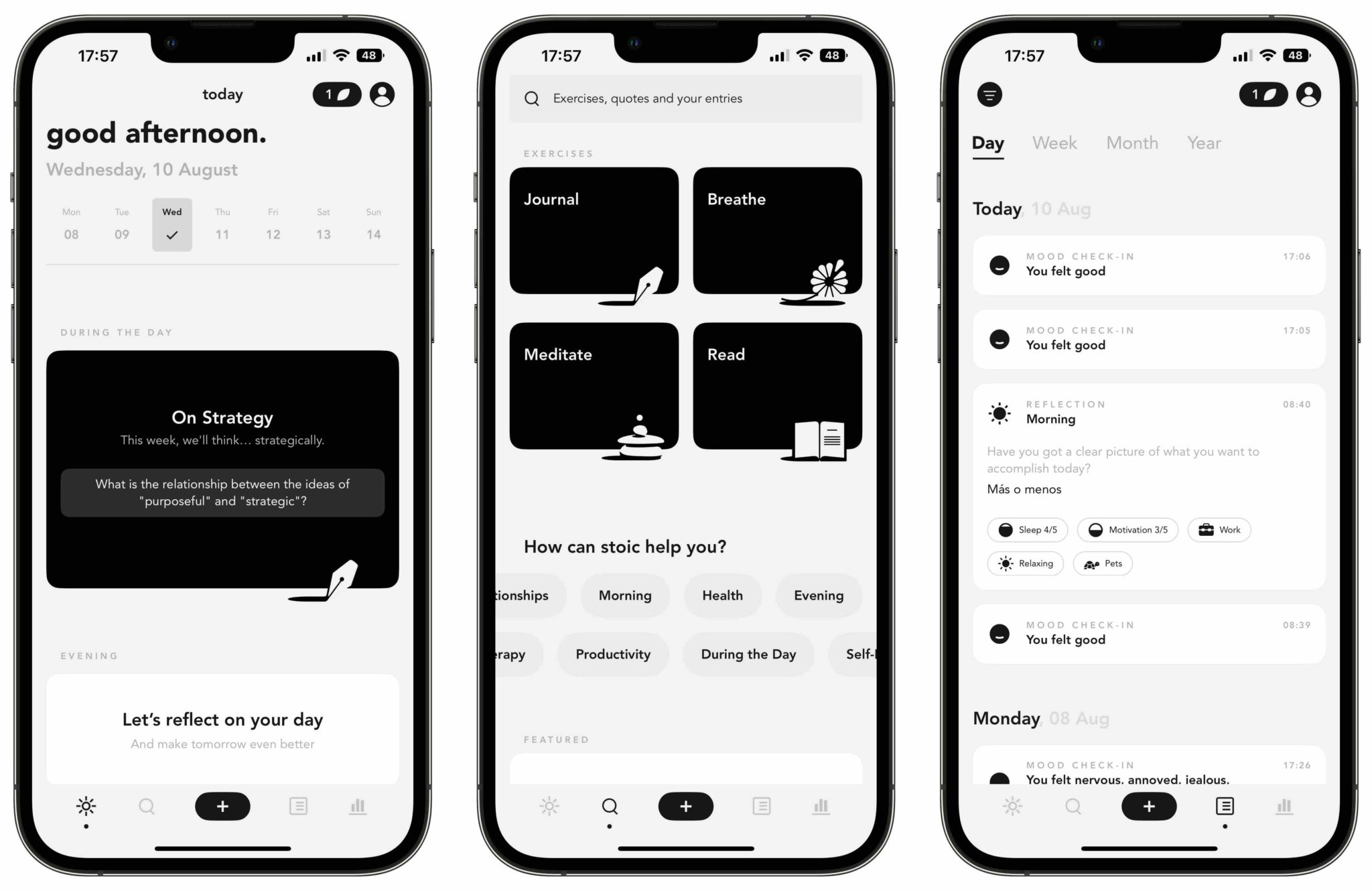 • Stoic — mood tracking centered on streaks, trends, and progress