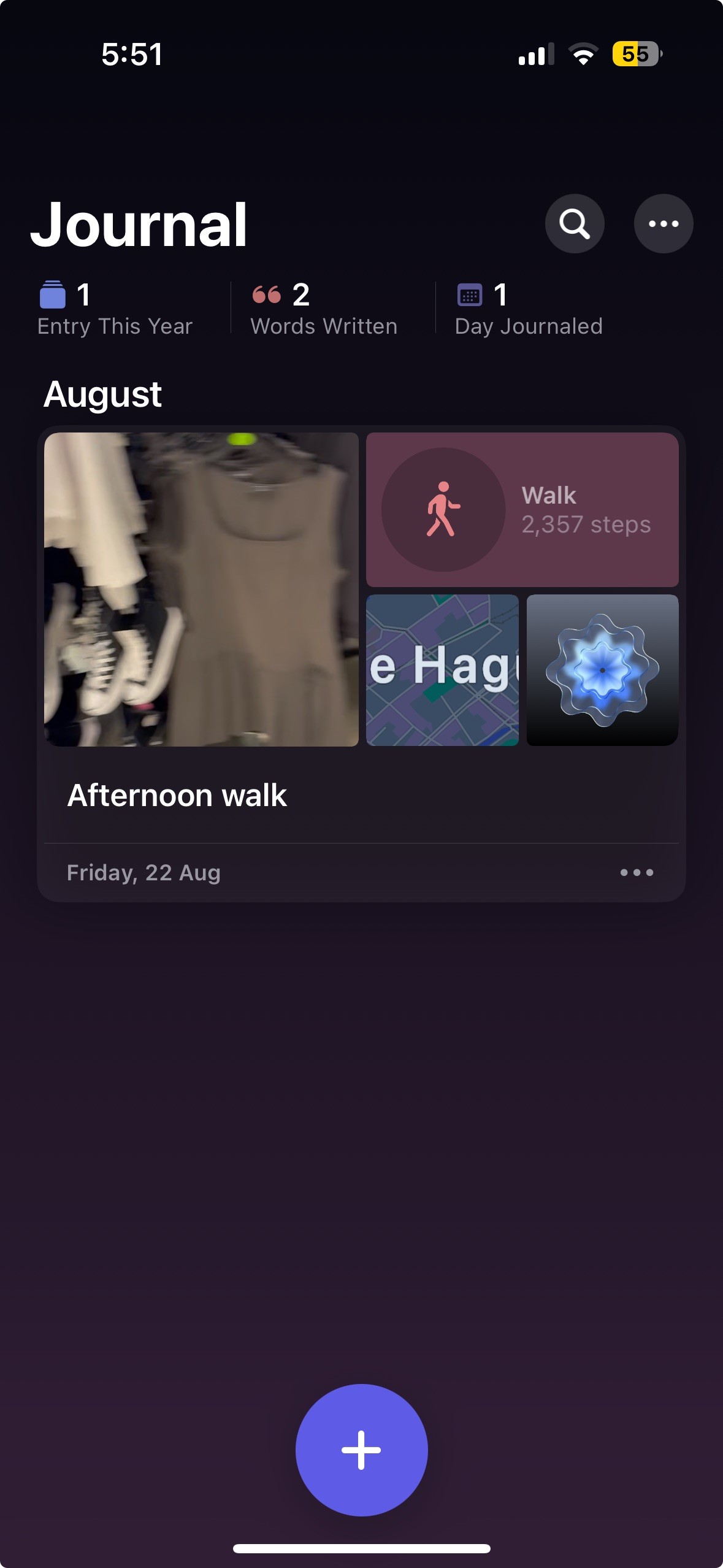 I intentionally designed the journal home as a quiet, empty surface.